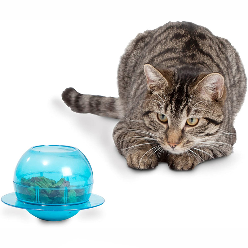 The Pet Safe Fishbowl Feeder Cat Toy gives cats of all ages a stimulating and rewarding play experience. Your cat can see, smell, and touch the treats or kibble you place in the fishbowl and she must solve the puzzle to get them out!
