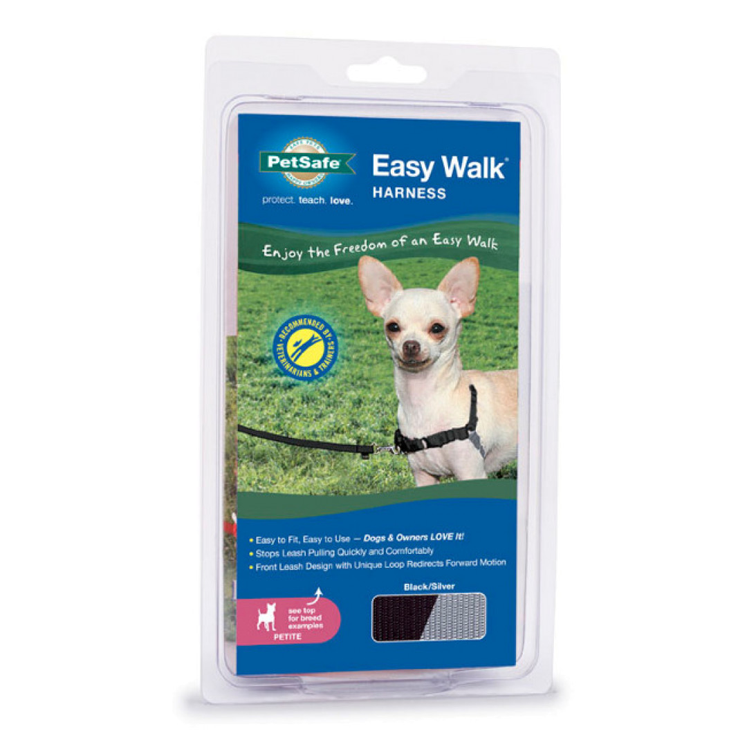 Loved and trusted by a million dog parents and trainers each year, the PetSafe® Easy Walk® No Pull Harness is the perfect walking companion for you and your pup! The patented Martingale loop and front chest leash attachment minimizes your dog’s pulling by gently steering him in the direction you are headed. To stop gagging or choking, this harness is designed to rest across your dog’s chest instead of his throat. This harness is perfect for light to moderate pullers and comes in a variety of colors and designs so your pup can take walks in style. Finding a perfect fit takes only minutes, so this harness is ready for action whenever you are!